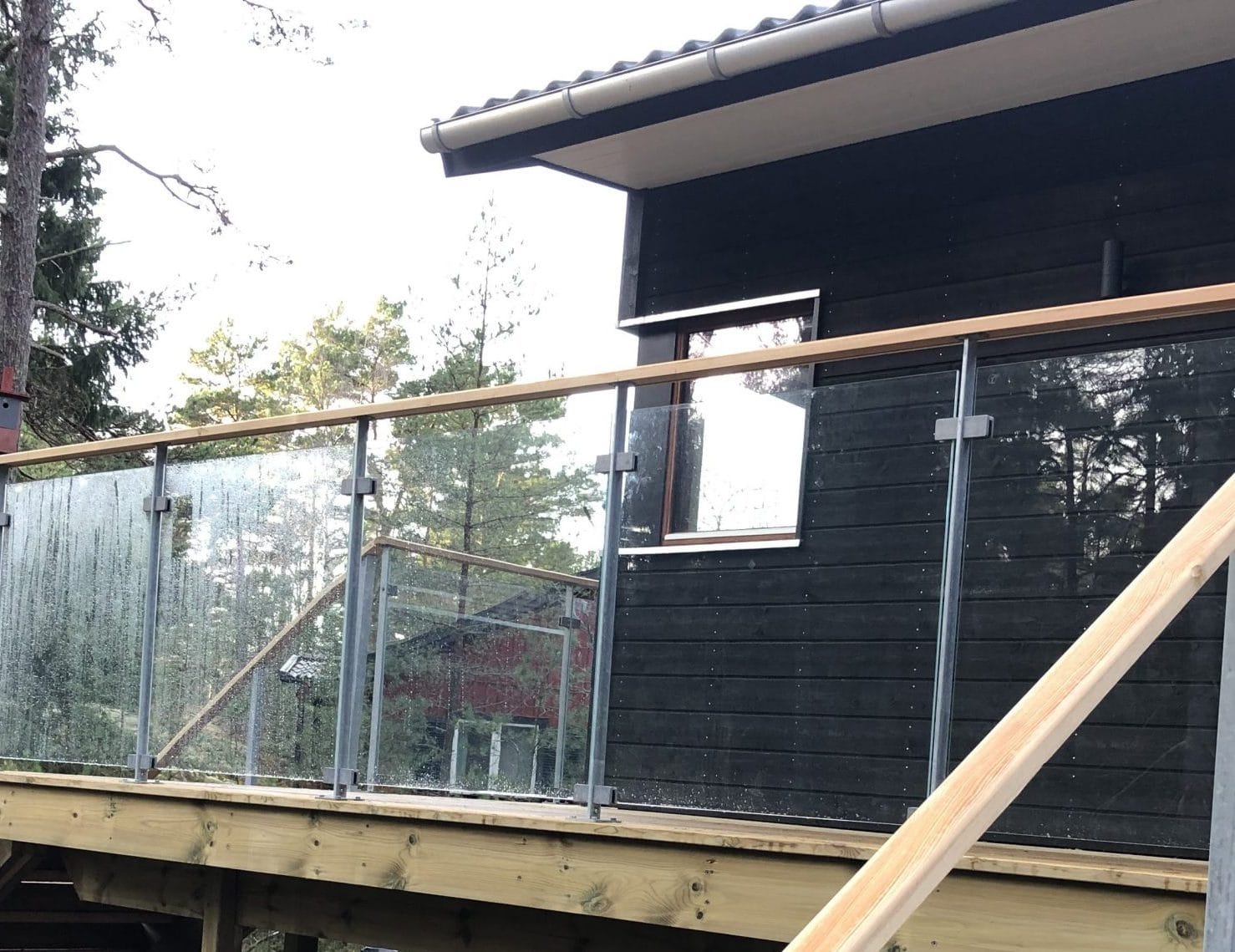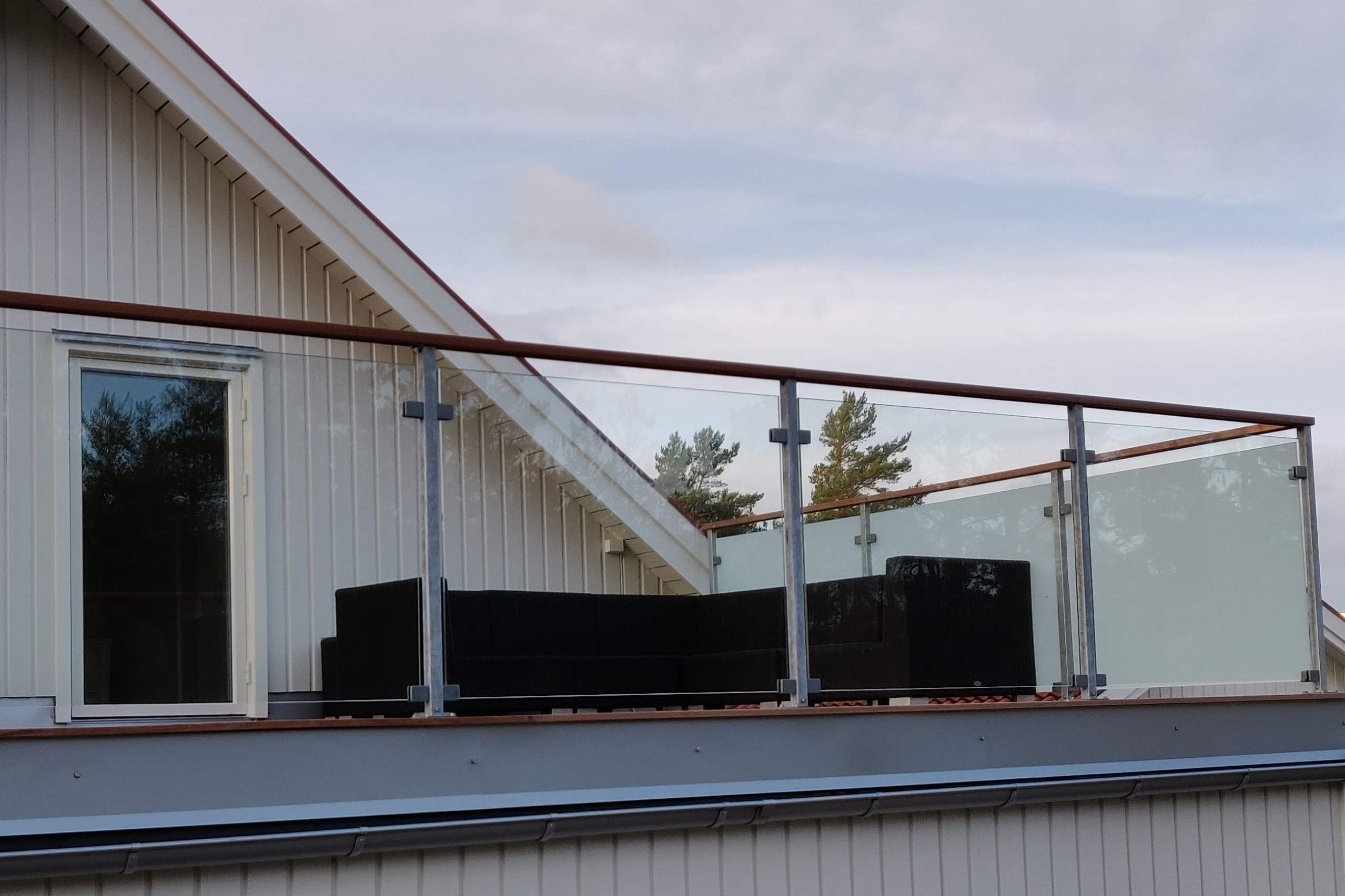 Ett glasräcke är det självklara valet för de allra flesta. Ett räcke med glas ger dessutom ett modernt, snyggt och stilfullt intryck. Väljer du ett glasräcke med galvade stolpar så får du dessutom ett prisvärt underhållsfritt räcke som har minimal påverkan på utsikten.